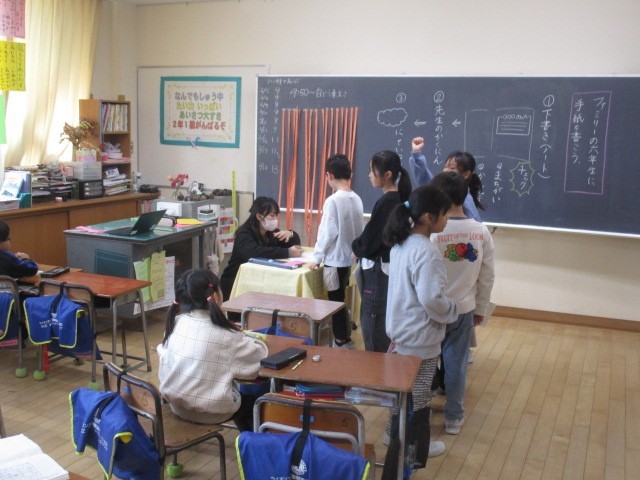 2年生の5時間目は、話合いの時間でした。6年生さんとの交流について話し合っていました。