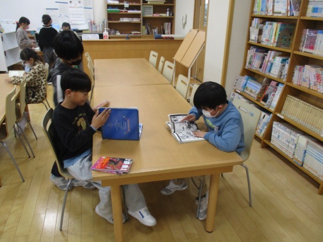 3年生は、3時間目に図書室にいました。本を選んで読んでいました。