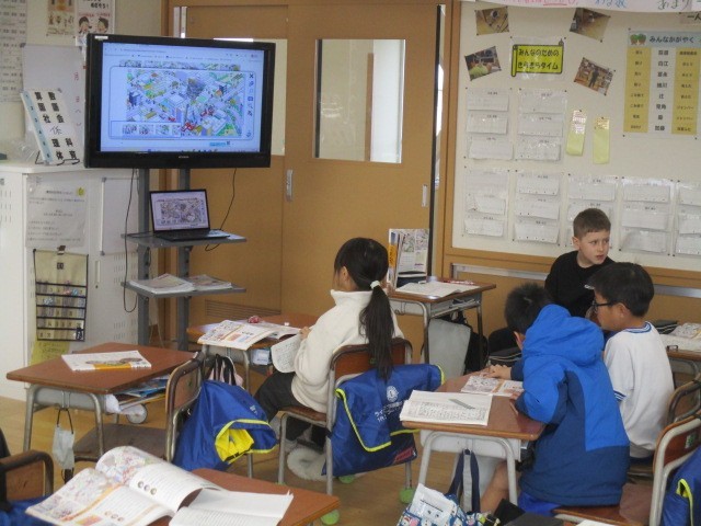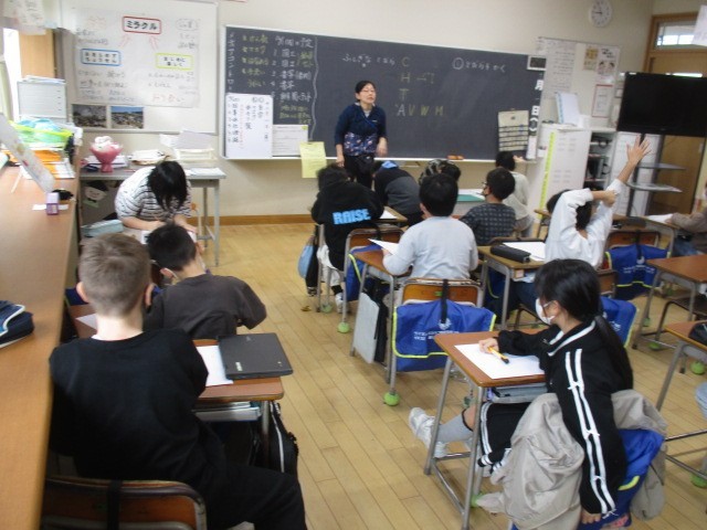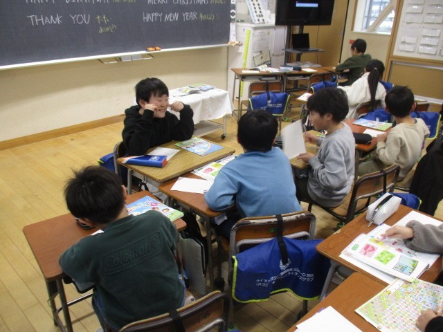 3年生の5時間目は、外国語活動の時間でした。グリーティングカードをつくっていました。