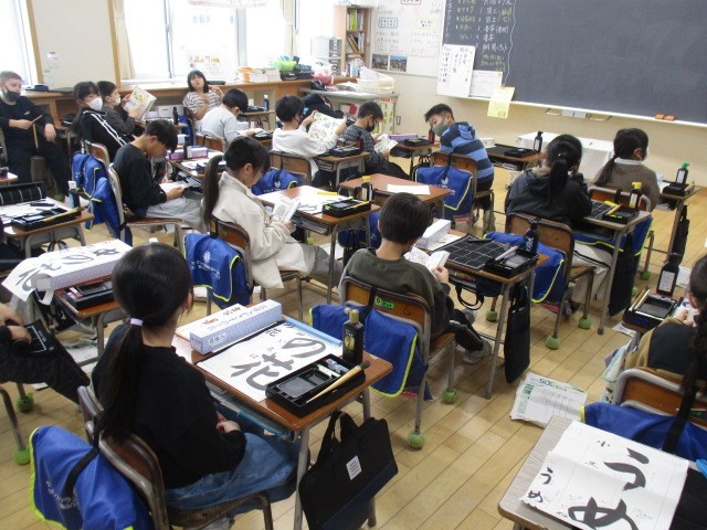 3年生の3時間目は、書写の学習でした。これから書き初めの練習をするところでした。