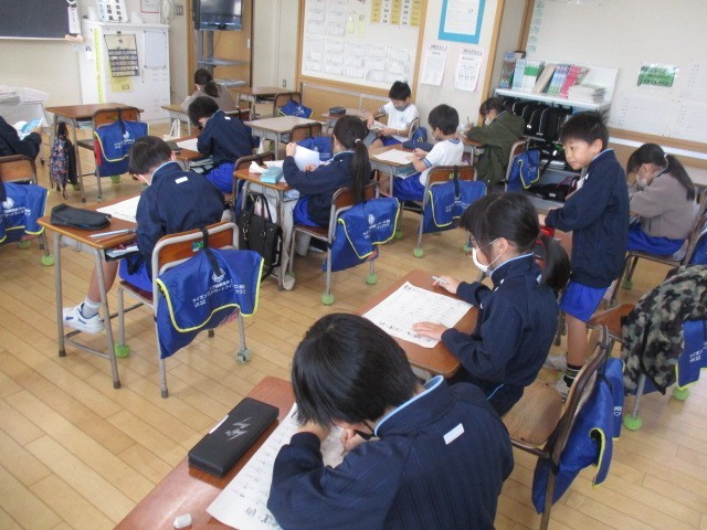 3年生の5時間目は、国語科の学習でした。テストをしていました。