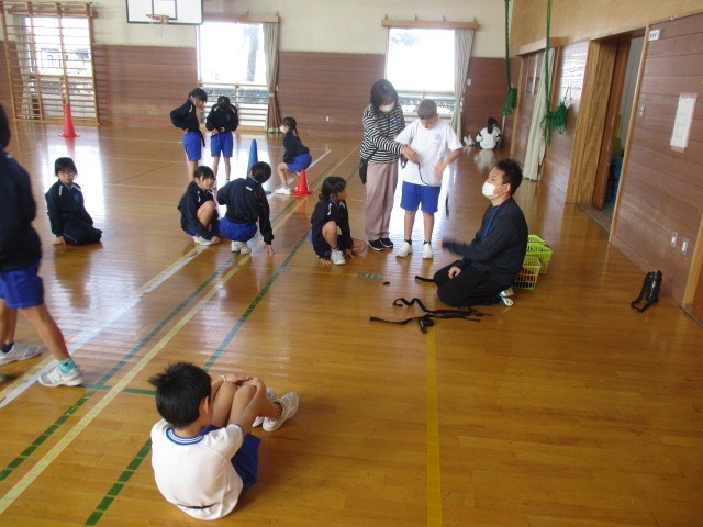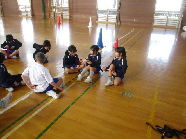 3年生の3時間目は、体育科の学習でした。タグラグビーの準備をしているところでした。