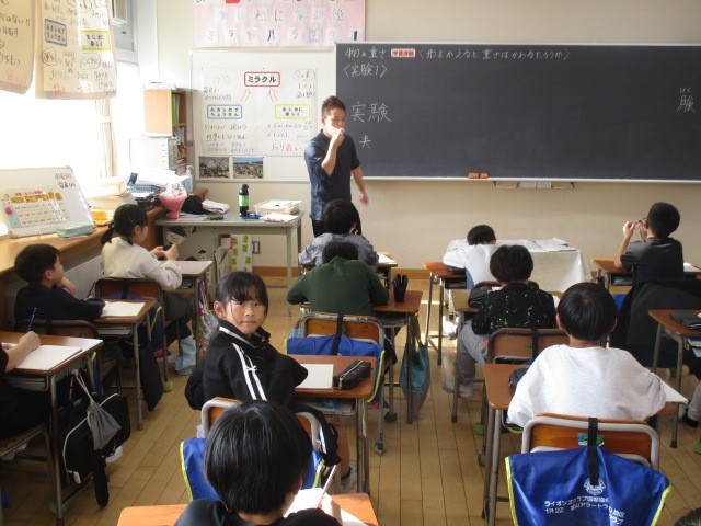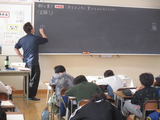 3年生の5時間目は、理科の学習でした。形がかわるとおもさもかわるのかについて、話し合っていました。