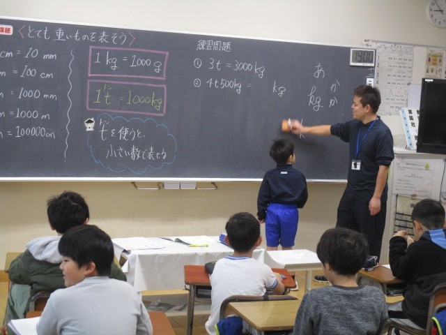 3年生の1時間目は、算数科の学習でした。4t500kgが何kgかを考えていました。