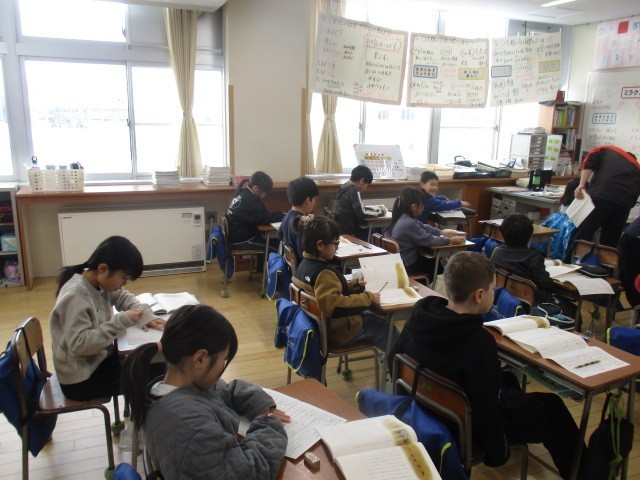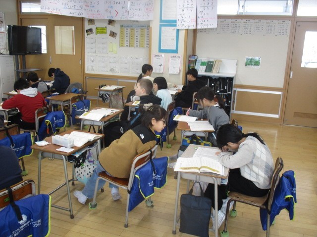 3年生は、1時間目に話合いをしていました。明日、スキー学習で4・5・6年生が学校にいないので、3年生が一番上の学年になり、どのような言動をしたらよいかについて、話し合っていました。がんばれ3年生。