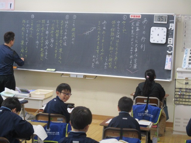 3年生の1時間目は、国語科の学習でした。ありの行列ができるわけについて考えていました。