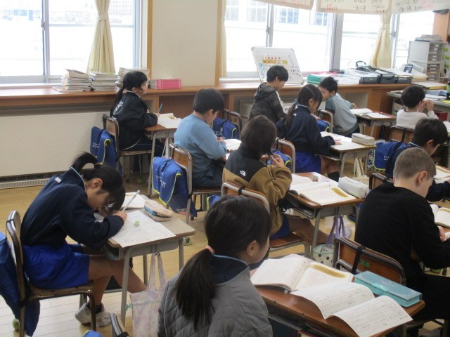 3年生は、1時間目に話合いをしていました。明日、スキー学習で4・5・6年生が学校にいないので、3年生が一番上の学年になり、どのような言動をしたらよいかについて、話し合っていました。がんばれ3年生。