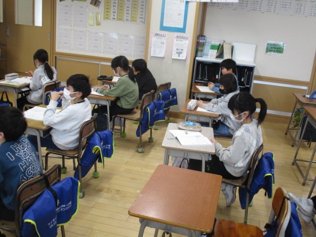 3年生は、1時間目にそれそれが休んでいた時にやっていなかった課題を進めていました。