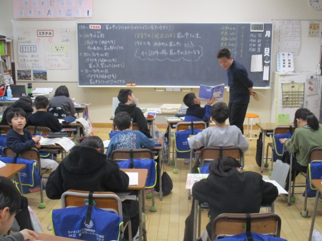 3年生の1時間目は、社会科の学習でした。和合地区が富山市になったときのことを考えていました。
