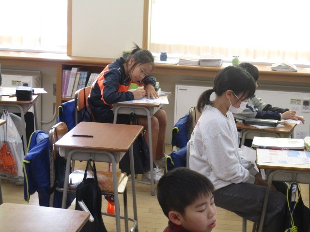 4年生の5時間目は、国語科の学習でした。テストをしていました。