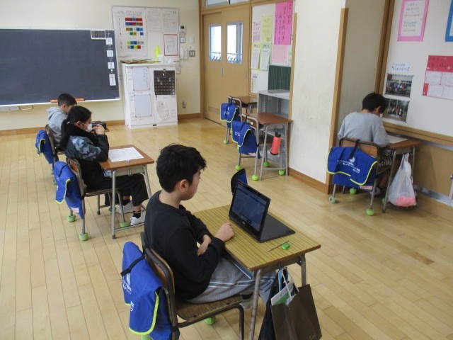 4年生の5時間目は、国語科の学習でした。テストをしていました。