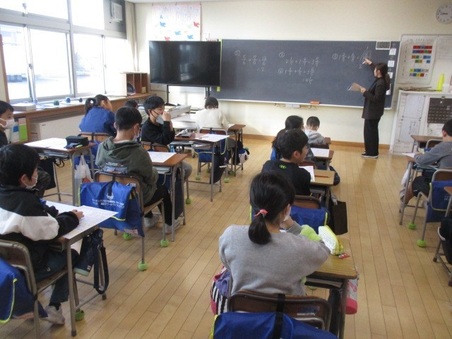 4年生の1時間目は、算数科の学習でした。同じ分数の話をしていました。