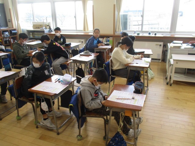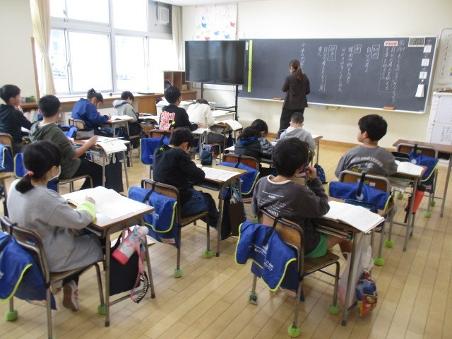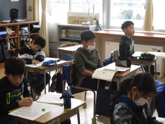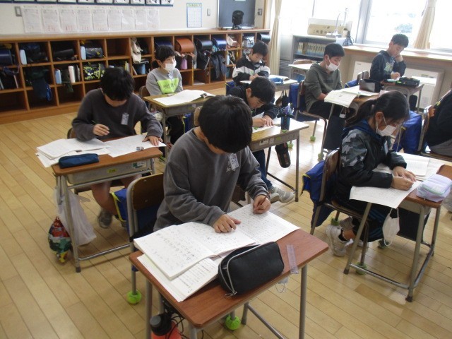 4年生の5時間目は、国語科の学習でした。テストをしていました。