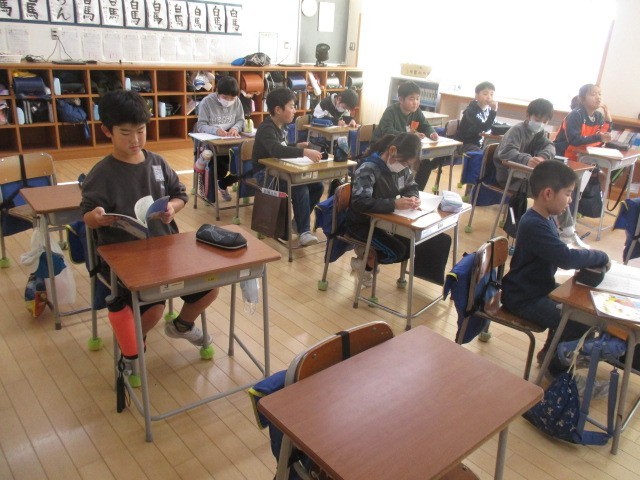 4年生の5時間目は、国語科の学習でした。テストをしていました。