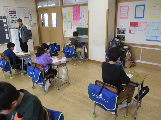 4年生は、3時間目に片付けをしていました。休み中に持って帰るものを整理していました。