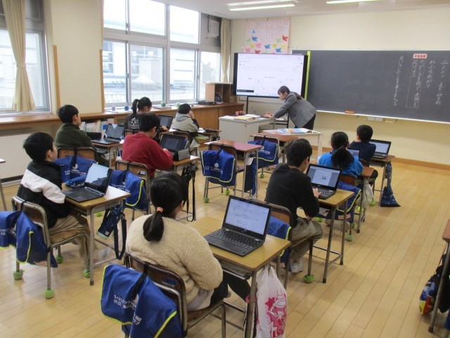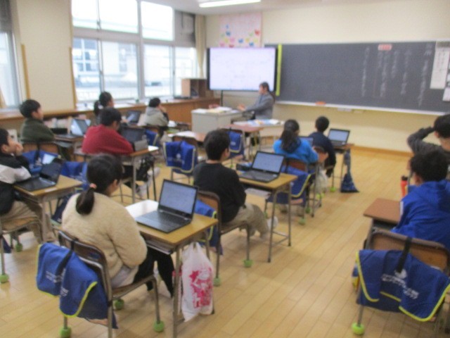 4年生は、1時間目に冬休み中の課題の確認をしていました。
