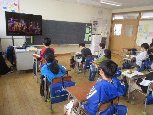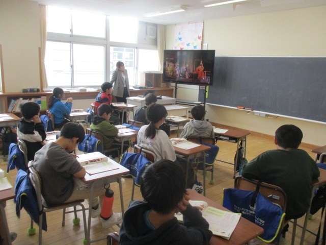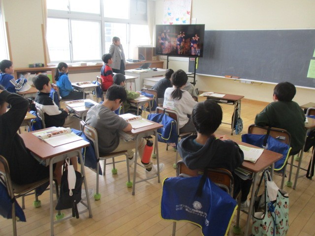 4年生の5時間目は、音楽科の学習でした。五箇山のこきりこの動画を見ていました。