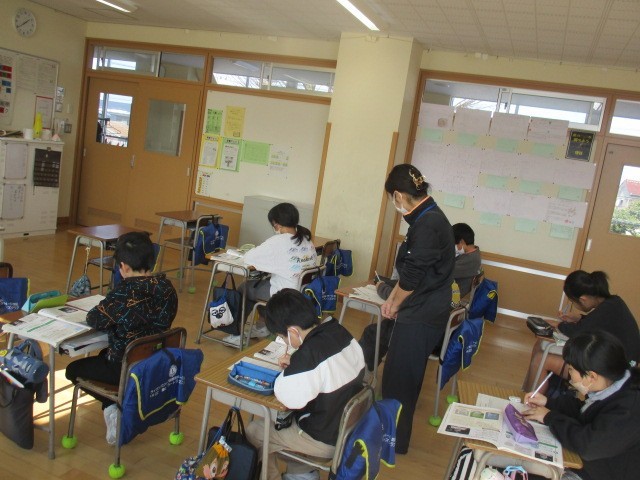 4年生の1時間目は、社会科の学習でした。2時間目の発表の練習をしていました。