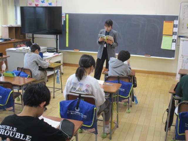 4年生の1時間目は、国語科の学習でした。「スワンレイクのほとりで」というお話の音読をしていました。