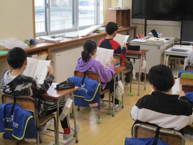 4年生の1時間目は、国語科の学習でした。友達の詩を読んで好きなところを伝えていました。