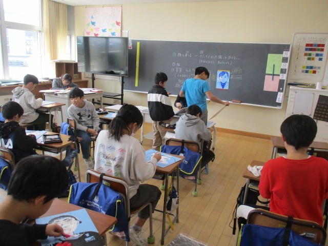 4年生の5時間目は図画工作科の学習でした。卒業式に向けた掲示物をつくっていました。