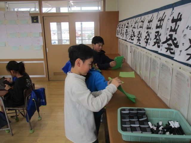 4年生の5時間目は図画工作科の学習でした。卒業式に向けた掲示物をつくっていました。