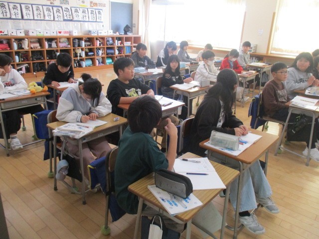 5年1組の1時間目は、国語科の学習でした。漢字テストをしていました。