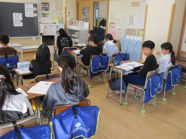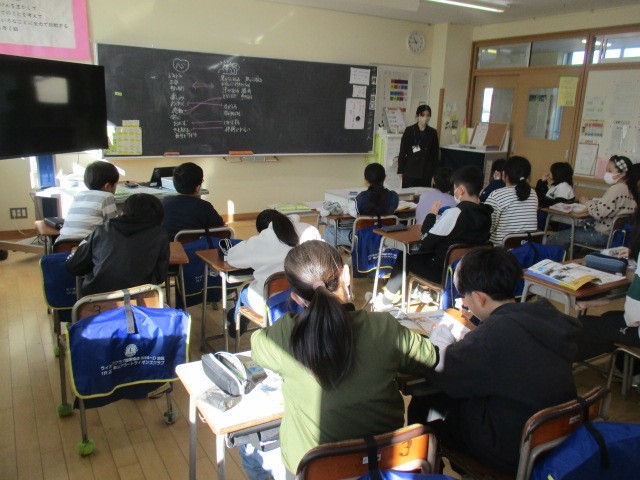 富山市立図書館の「よみきかせの会」の皆さんに読み聞かせをしていただきました。5年1組教室の様子です。