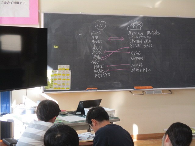 5年2組の3時間目は、保健体育の学習でした。「心と体のつながり」について考えていました。