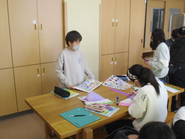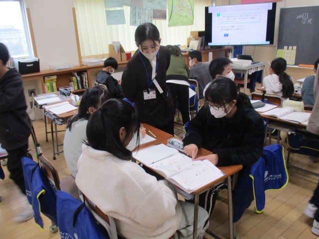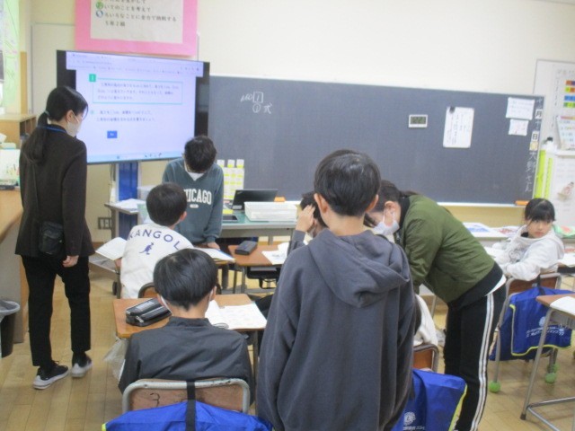5年2組の1時間目は、外国語科の学習でした。私の町の自慢の文章を考えていました。