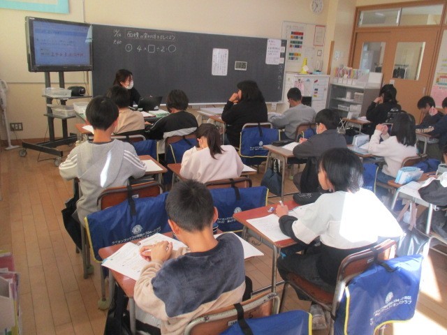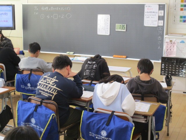 5年1組の3時間目は、算数科の学習でした。台形の面積について考えていました。