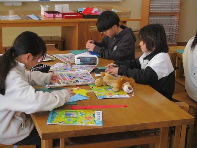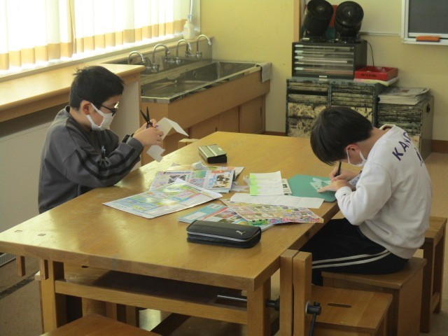 5年2組の3時間目は、外国語科の学習でした。私の町の自慢の文章を考えていました。