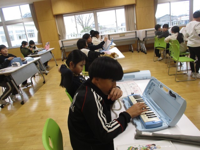 5年2組の5時間目は、音楽の学習でした。「キリマンジャロ」「夢の世界へ」を鍵盤ハーモニカやリコーダーで演奏していました。