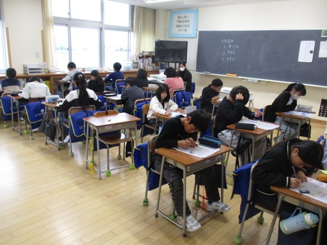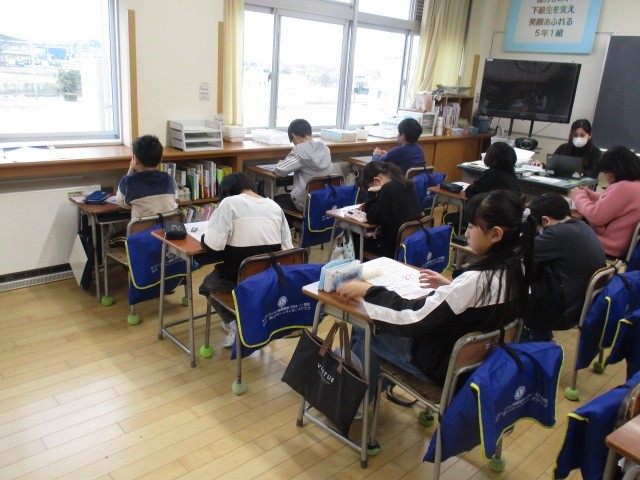 5年1組の3時間目は、理科の学習でした。「もののとけかた」のテストをしていました。