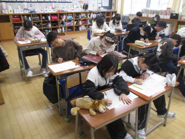 5年2組の3時間目は、算数科の学習でした。チャレンジテストの練習をしていました。