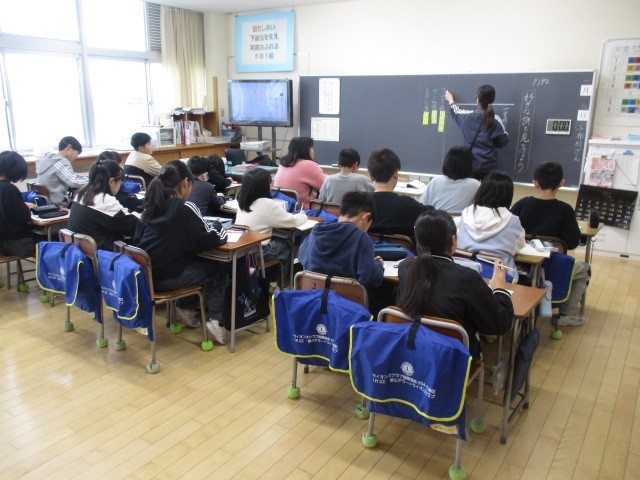 5年1組は、3時間目に片付けをしていました。休み中に持って帰るものを整理していました。