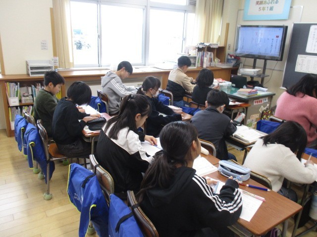 5年2組は、1時間目に冬休み中に練習してきた書き初めを貼っていました。すごくたくさん練習してきた人が何人もいました。すごいです。