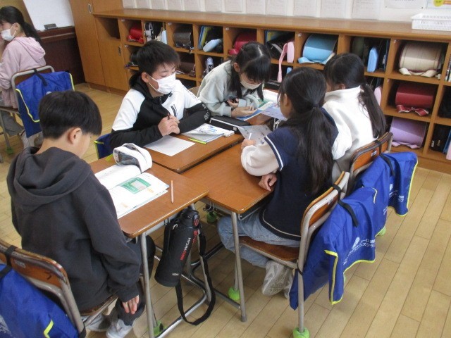 5年1組の5時間目は、算数科?の学習でした。友達のグループのつくった問題を解こうとしていました。