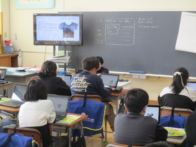 5年1組の6時間目は、図画工作科の学習でした。Tシャツの形に画像を貼り付けてオリジナルな「もようTシャツ」をつくっていました。