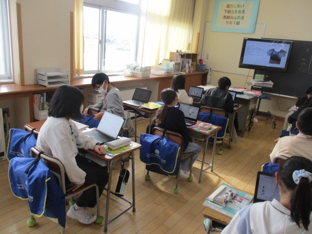 5年生の3時間目は、総合的な学習の時間でした。「卒業を祝う週間」に向けて、グループごとに活動を進めていました。