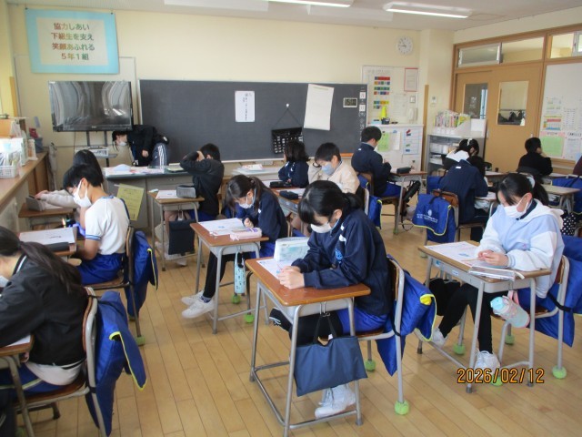 5年1組は、1時間目に、国語のテストをしていました。朝からとても集中して解いていました。