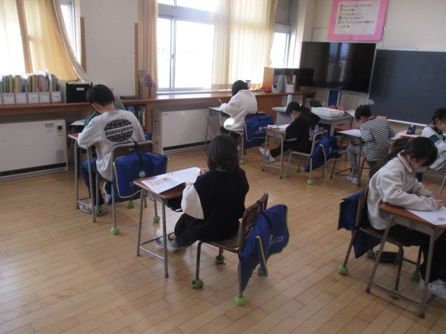 5年2組の1時間目は、社会科の学習でした。「自然災害を防ぐ」のテストをしていました。