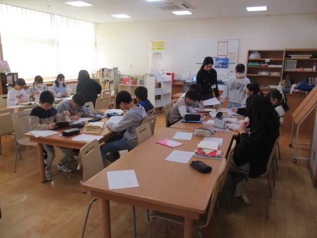 5年1組の5時間目は、国語科の学習でした。図書室で詩を探していました。