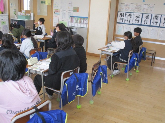 5年生は、3時間目に5年1組の教室に集まっていました。卒業を祝う週間のことで話合いをするみたいです。