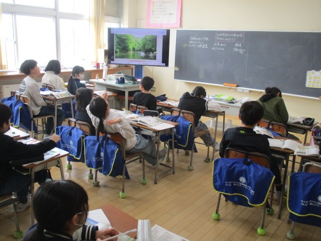 5年2組の3時間目は、社会科の学習でした。白神山地について話し合っていました。