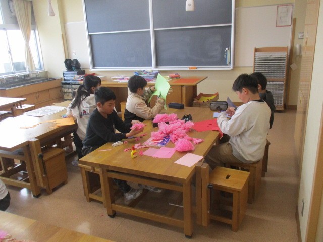 5年生は、2時間目に準備を進めていました。来週から始まる卒業生を祝う週間に向けての準備を進めていました。