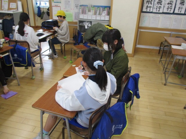 5年生の5時間目は、総合的な学習の時間でした。卒業を祝う週間に向けて準備を進めていました。