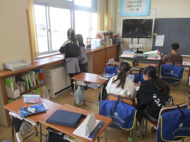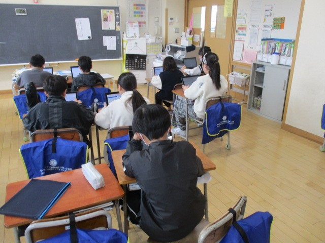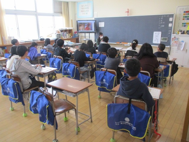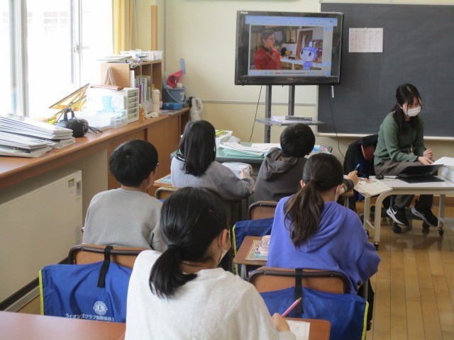 5年1組の3時間目は、外国語科の学習でした。輪島塗について英語で話す動画を見ながら考えていました。