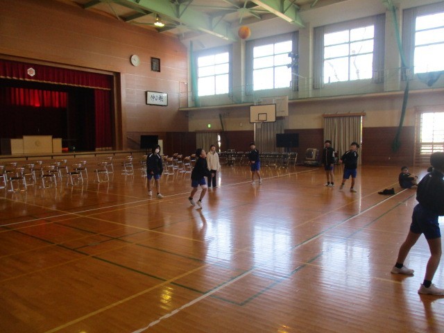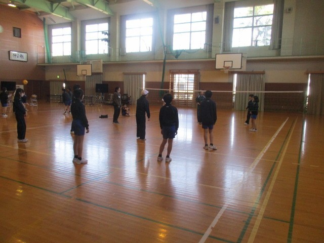 5年2組の3時間目は、体育科の学習でした。体育館でビーチバレーをしていました。
