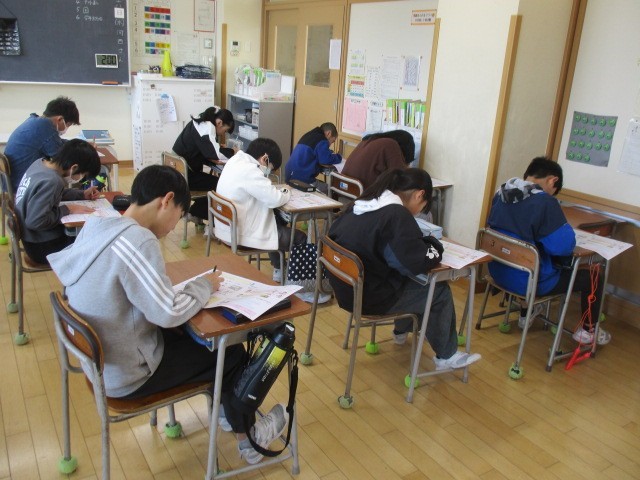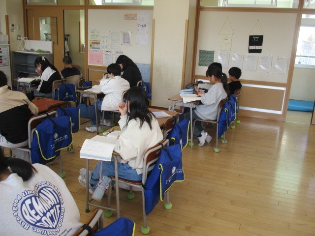 5年1組の1時間目は、国語科の学習でした。「大造じいさんとガン」のテストをしていました。